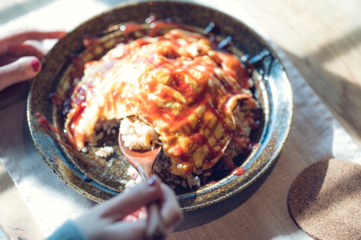 看板メニューのオムライスなど、地元食材を中心としたメニューに、足繁く通う地元住民も多い。