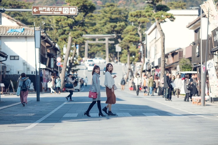 通りには出雲ならではの「出雲ぜんざい」や「出雲そば」や「縁」にちなんだ土産物を取り扱う店が軒を連ねています。