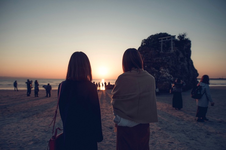 「神迎えの聖地」稲佐の浜で夕日を眺めるコースです。