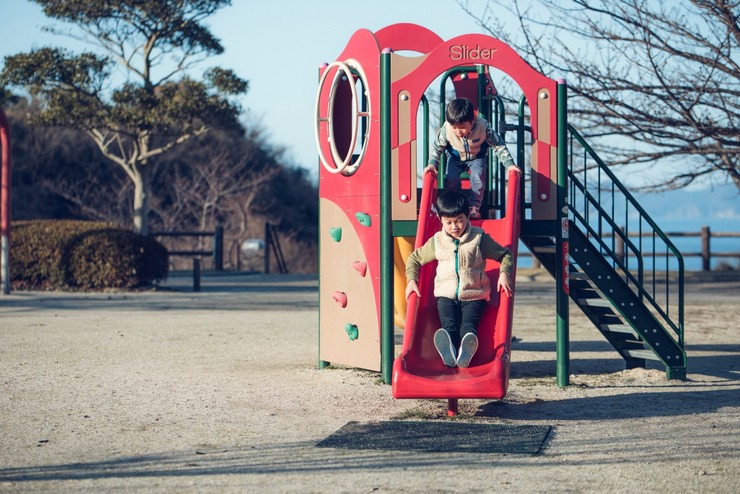 手引ヶ丘公園は、ローラースライダー、アスレチック遊具、幼児向けの子供広場など、家族連れに大人気の公園。
